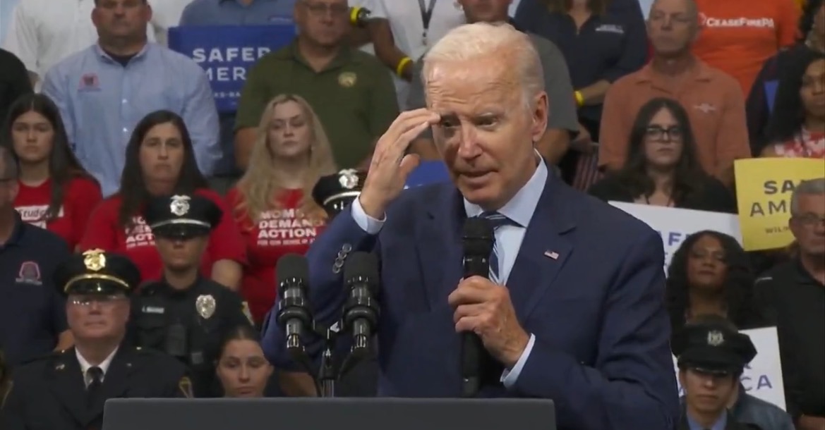 Biden in Wilkes Barre, Pennsylvania on Tuesday, screen image.